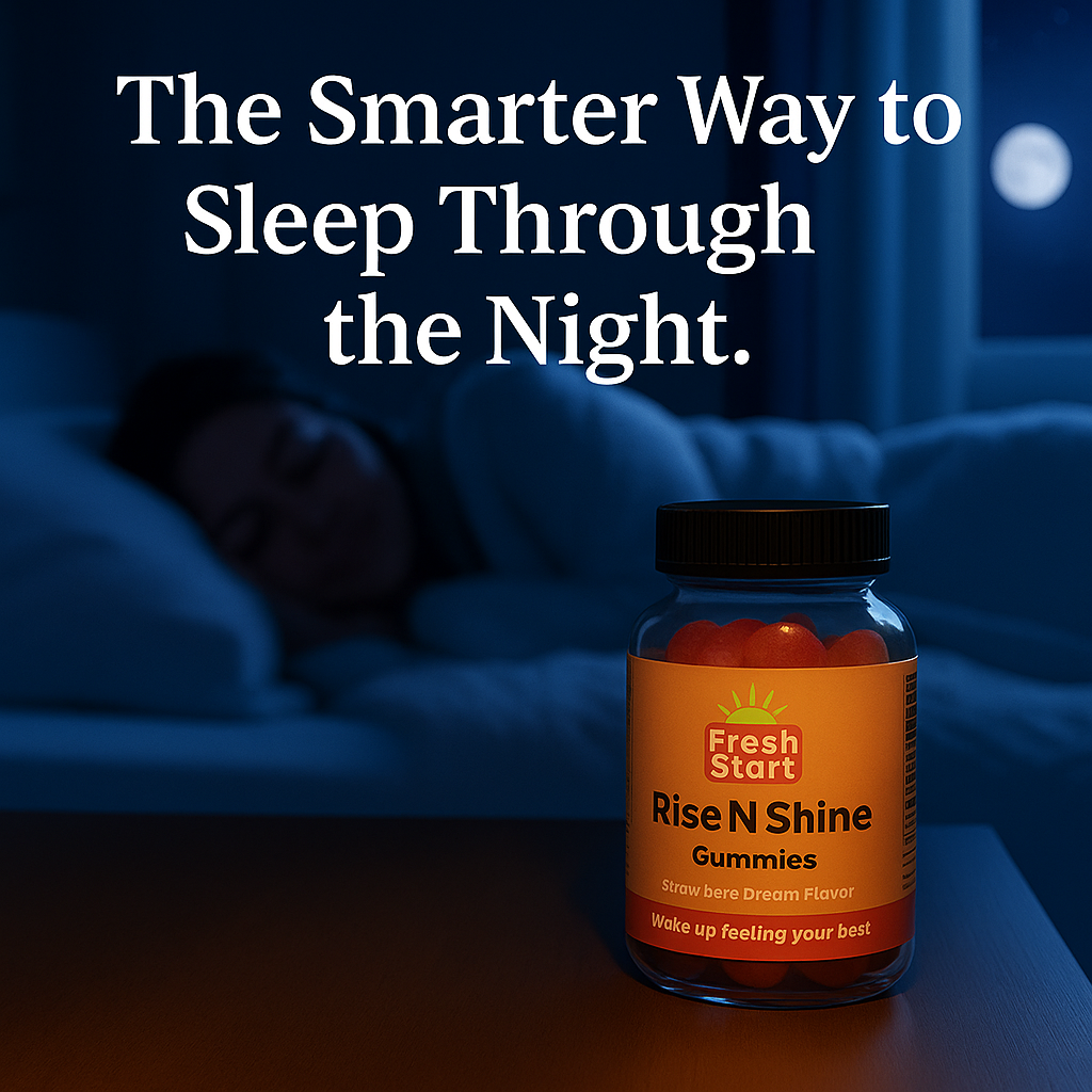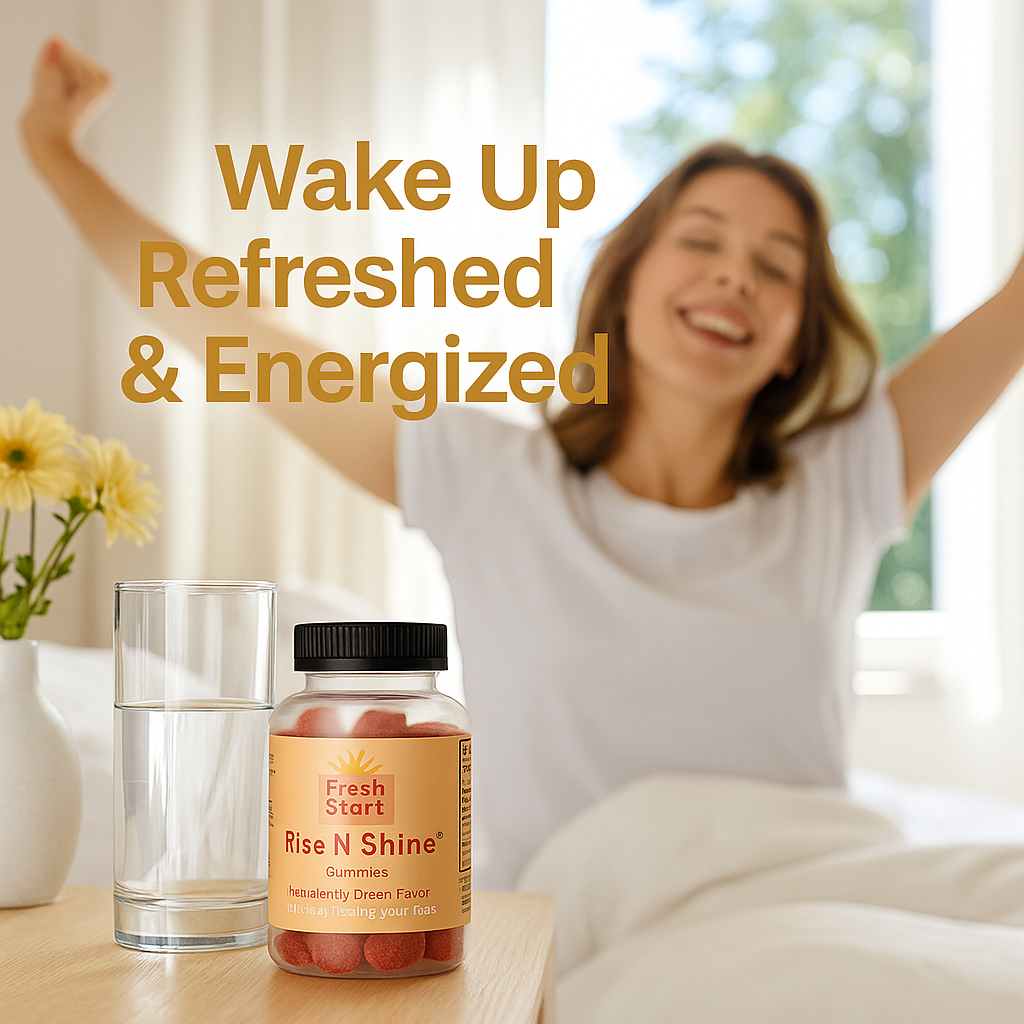 Rise N Shine™ Gummies don’t just knock you out , they support your body’s natural sleep cycle so you spend more time in REM, the stage of sleep that leaves you truly restored. Our fast-acting formula helps you fall asleep in as little as 30 minutes, stay asleep through the night, and wake up refreshed and energized. 100% drug-free, non-habit forming, and made with a delicious strawberry flavor, Rise N Shine™ is the bedtime ritual that makes mornings brighter
